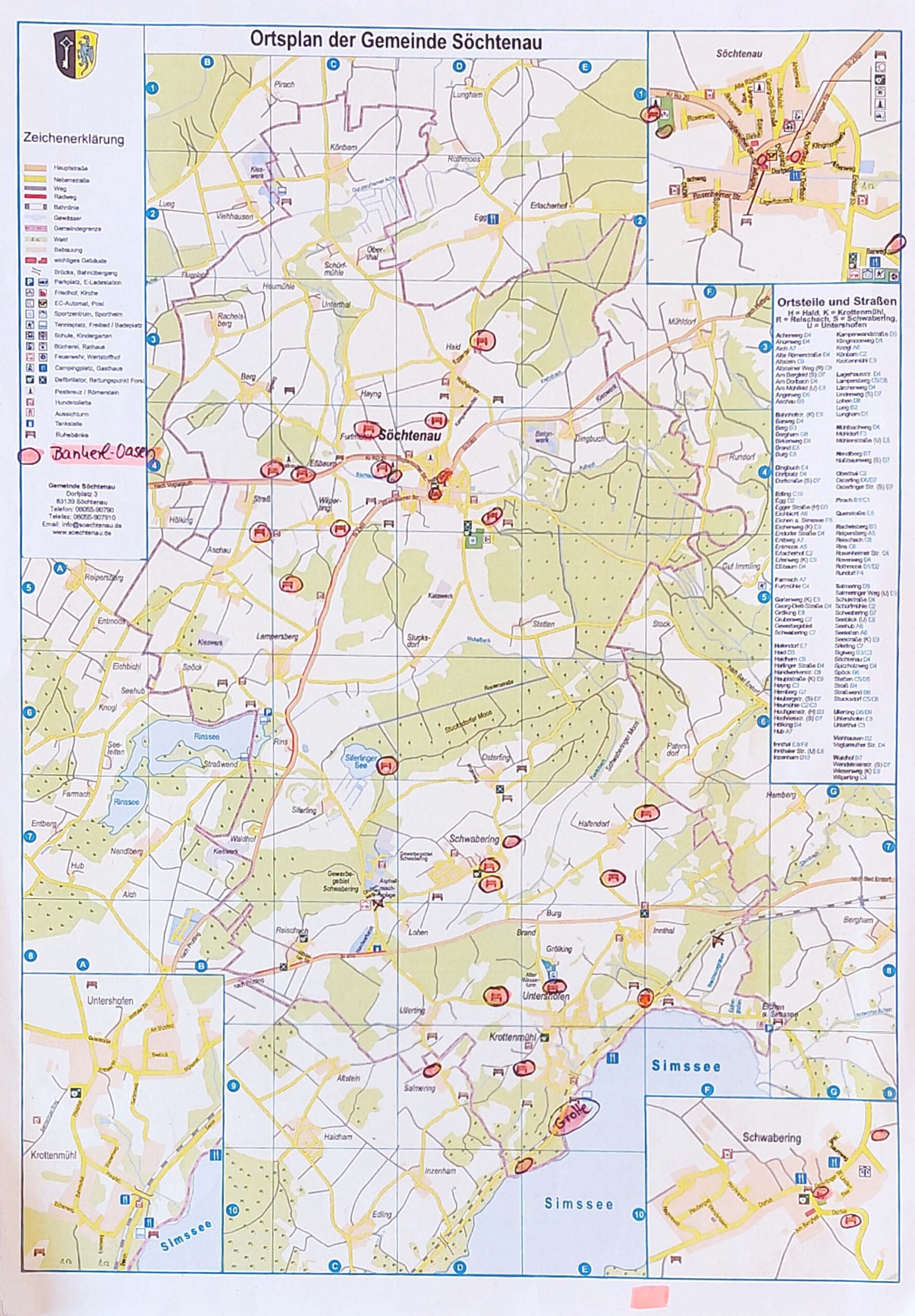 Anlässlich der 1101-Jahr-Feier der Gemeinde Söchtenau wurden im Frühjahr 2025 „Bankerl-Oasen“ geschaffen. Hierzu wurden bereits vorhandene Ruhebänke im Gemeindegebiet mit kleinen Holzstelen ergänzt, an denen jeweils eine Dose befestigt ist. In dieser Dose findest du kleine Zettel mit Gebeten, Wünschen, besinnlichen Texten, Geschichten etc.