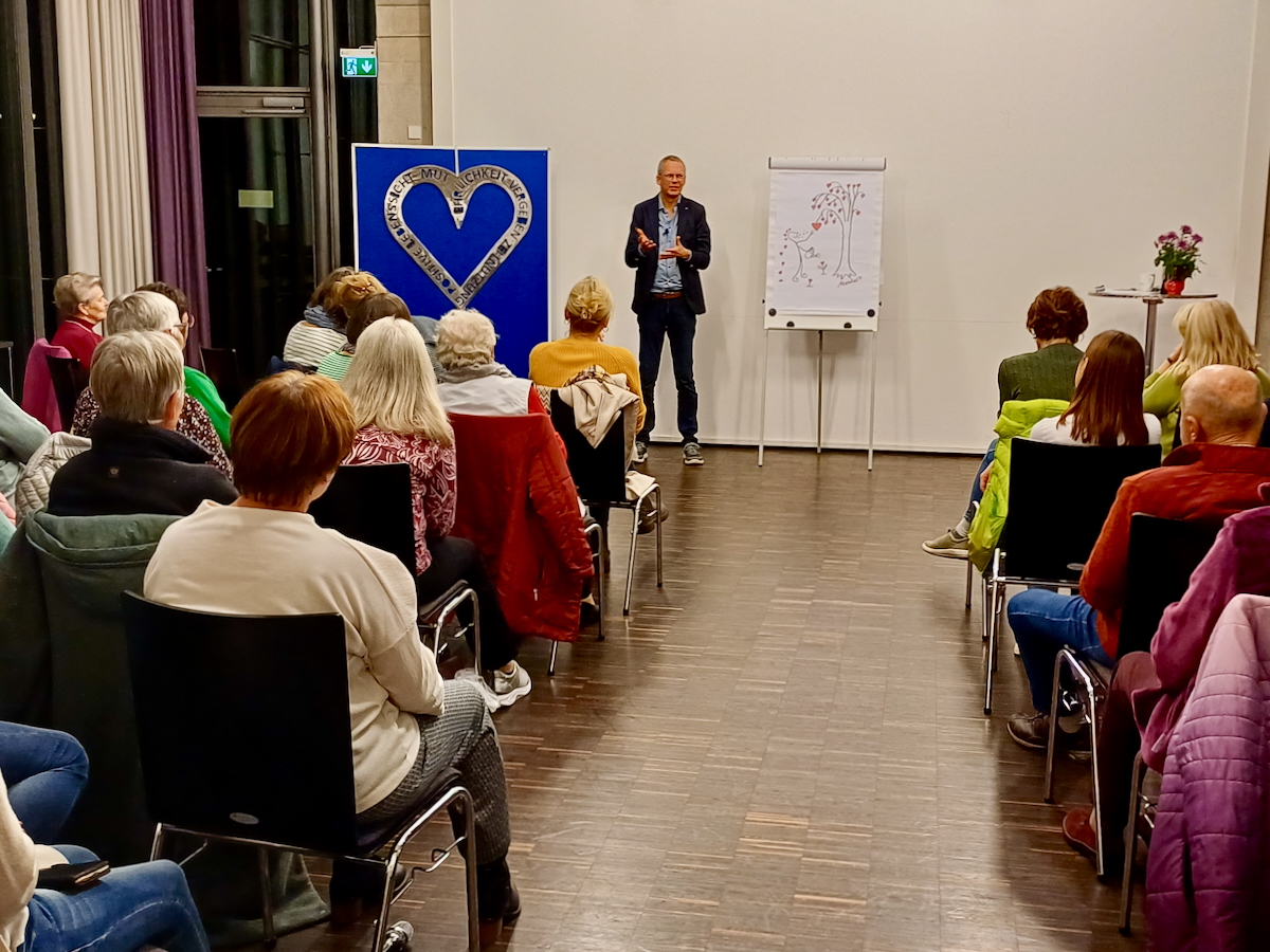 Der (Mitmach-)Vortrag war geprägt von zahlreichen Wortbeiträgen aus dem Kreis der rund 60 Besucherinnen und Besucher. In einer offenen, warmen Atmosphäre wurde deutlich: Veränderung beginnt nicht irgendwo – sie beginnt bei jedem von uns selbst.