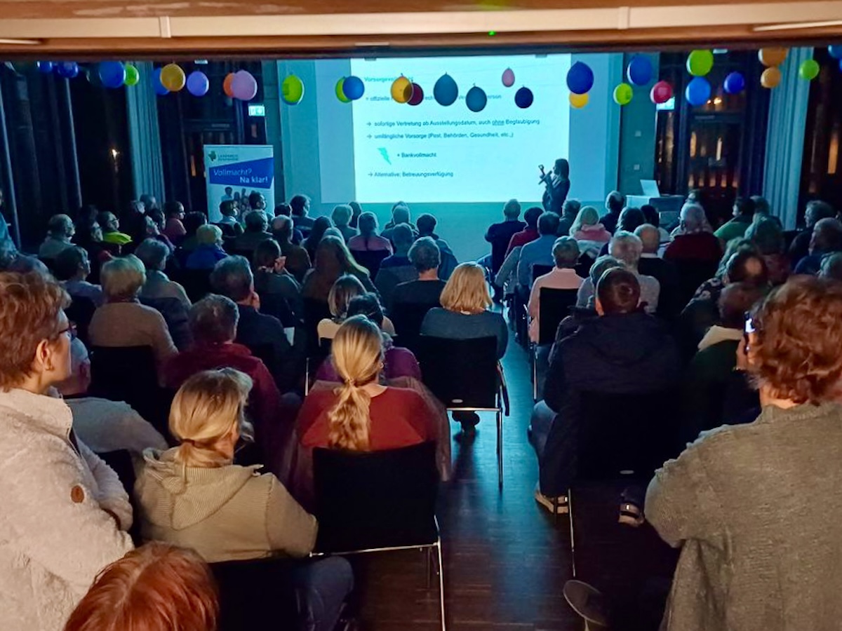 Die Vorsorgevollmacht wurde im Vortrag als wichtigste Säule der Vorsorge hervorgehoben. Mit ihr bevollmächtigt man eine oder mehrere Vertrauenspersonen, im Fall der eigenen Entscheidungsunfähigkeit rechtsverbindlich zu handeln. Dies betrifft insbesondere Gesundheits- und Pflegeentscheidungen, Vermögensangelegenheiten, Wohn- und Aufenthaltsfragen sowie die Vertretung gegenüber Behörden und Institutionen.