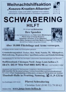 Geldspenden für den Einkauf von Lebensmitteln zu Großhandelsnettopreisen können auch auf das Konto der Pfarrkirchenstiftung Obing bei der Raiffeisenbank Chiemgau Nord eingezahlt werden: