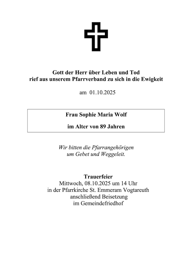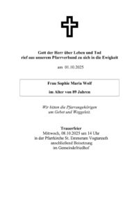Wir bitten die Pfarrangehörigen um Gebet und Weggeleit.
